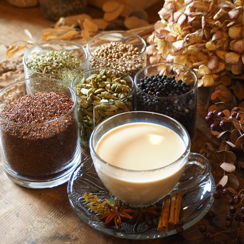 ルイボスティーとスパイスを煮込んで牛乳を加えるだけで簡単に本格的なチャイが作れます。