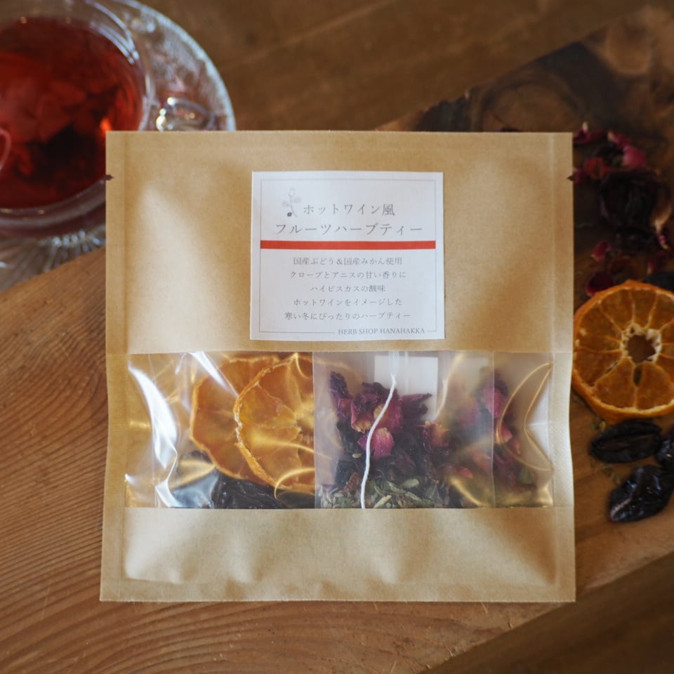 「ホットワイン風」は、スパイスとフルーツをブレンドし、ワインのような香りを楽しめるノンアルコールのハーブティーです